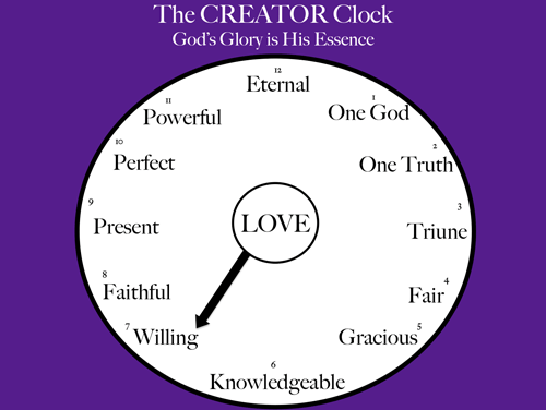 In fact, if you reflect on what we have been learning here at Barah Ministries over the last five years, most of our learning has been centered on the CREATOR. We are learning about the depths of God’s Person, and we’re using an encoding device called the CREATOR CLOCK to introduce us to the various aspects of God’s character. Tick tock. What time is it on the CREATOR CLOCK? It’s seven o’clock.